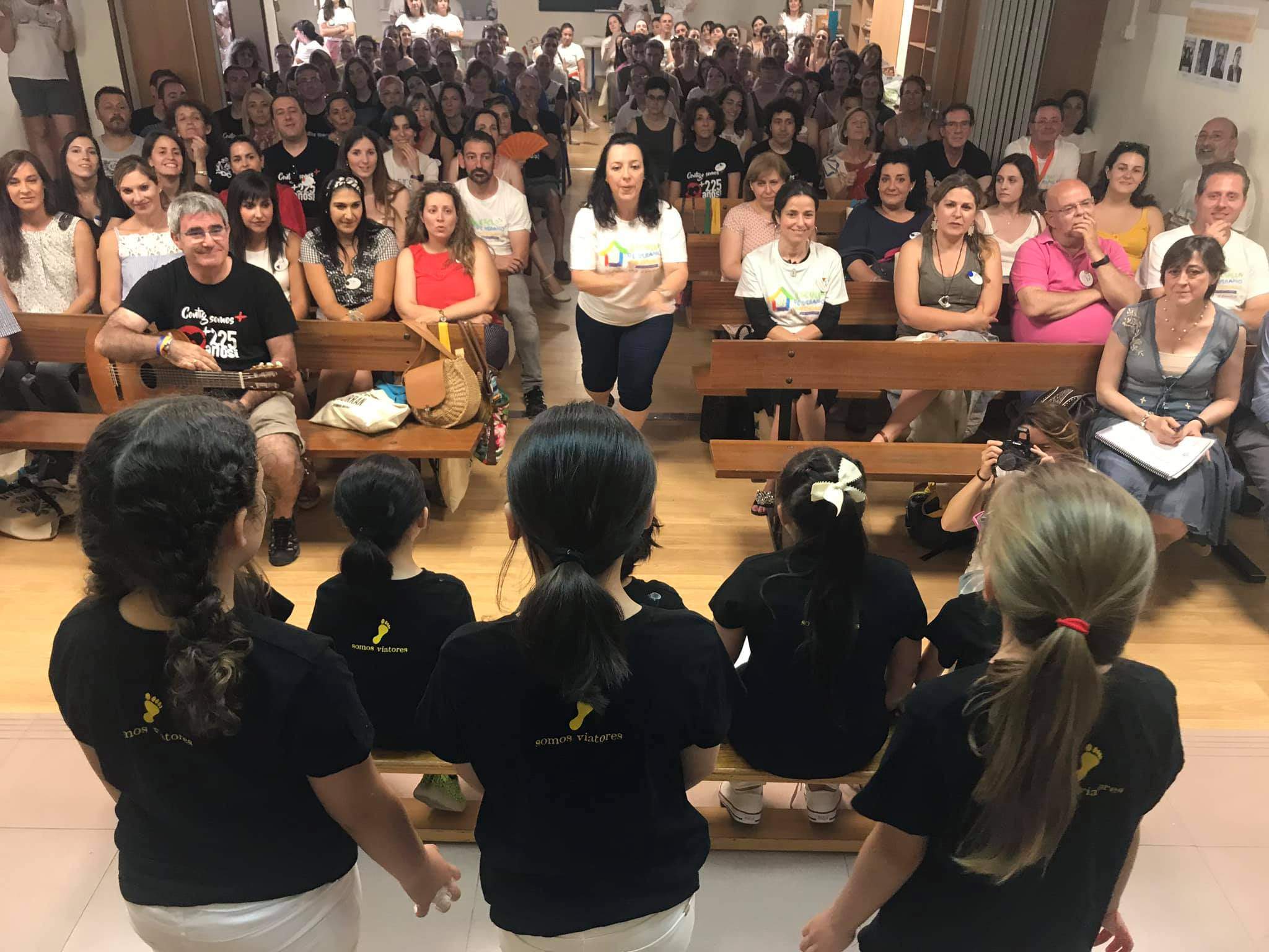 28, 29 y 30 de junio. Colegio Ntra. Sra, de Fátima, Madrid. Una danza contemplativa, en el gimnasio del colegio, nos predispone para el arranque del evento. Unos 150 profesores de los colegios Viatorianos, reunidos.