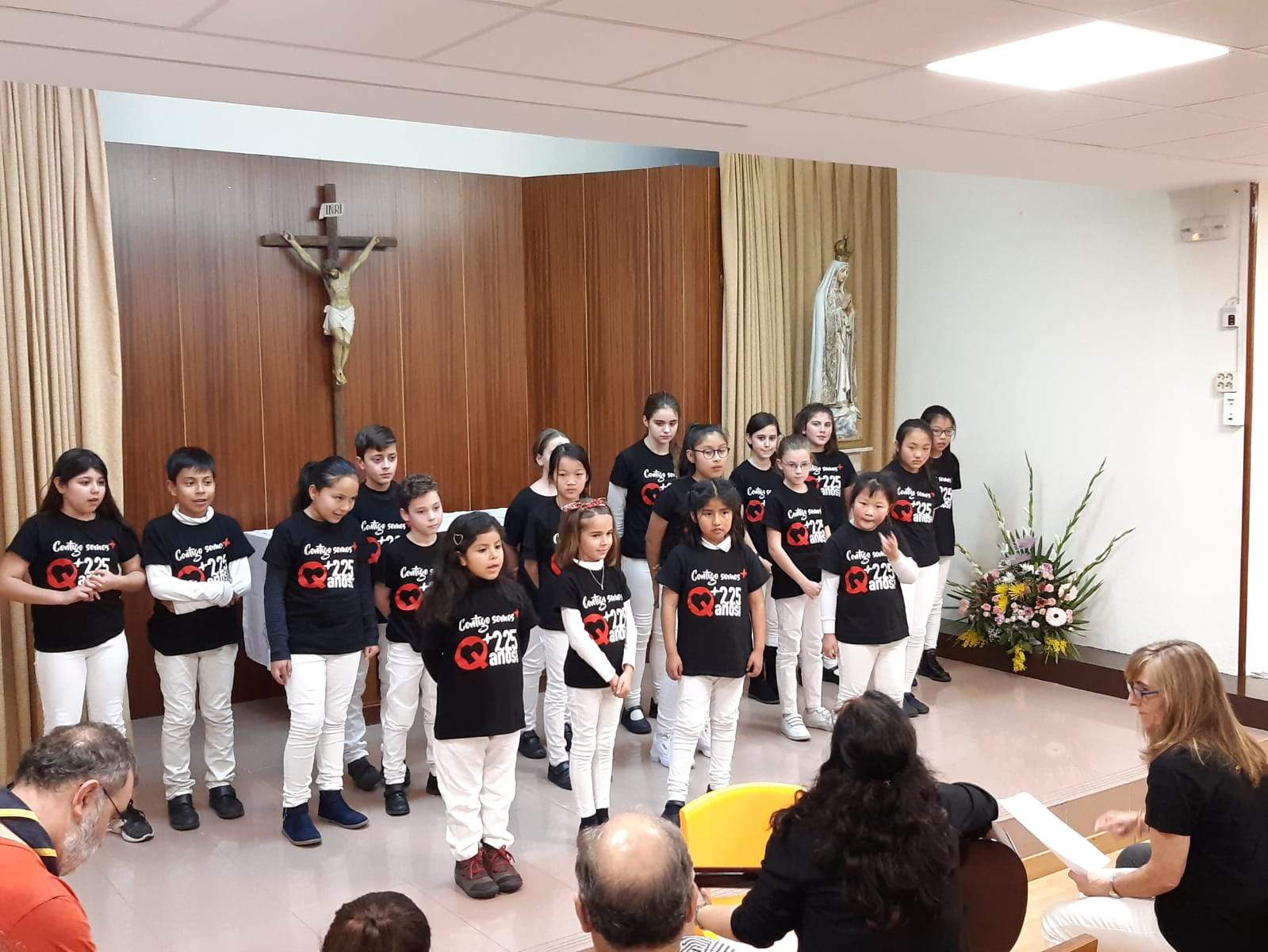 En un primer momento, Tomás, director EI-EP, realizó una presentación del colegio al obispo y seguidamente, el obispo se dirigió a la comunidad educativa (profesores, personal no docente, comunidad viatoriana, padres, alumnos, antiguos alumnos) para animar a todos en la tarea educativa-evangelizadora. A continuación, el coro colegial, dirigido por las profesoras Sagrario y Pilar, interpretó la canción «contigo somos más».