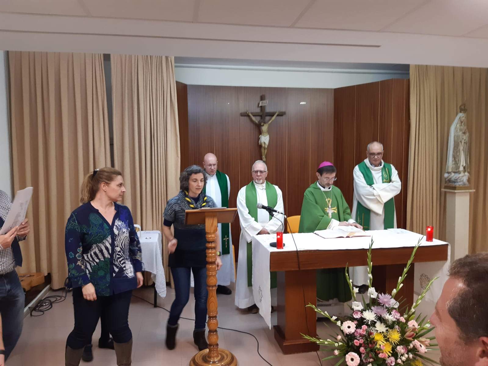 En un segundo momento, toda la comunidad celebró la Eucaristía, presidida por D. José Cobo y concelebrada por Juan Pedro (vicario episcopal), Chus (superior provincial de los viatores) y Chalo (administrador parroquial de la Soledad y viator). Eucaristía preparada con mucho gusto por el equipo de pastoral del colegio y animada con los cantos por un grupo de profesores, dirigidos por Eduardo.