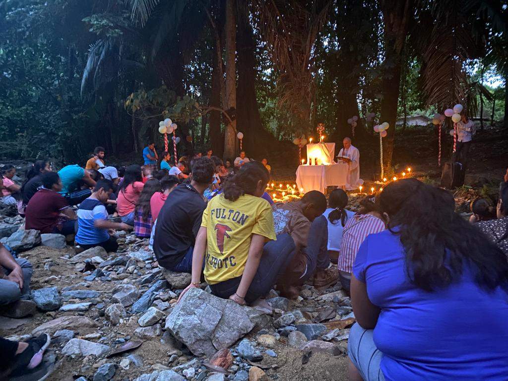 Varias cosas han impactado en el corazón de estos jóvenes en esta jornada: el Río como parábola de la vida, los testimonios de varios jóvenes que con toda su crudeza y riqueza nos emocionaron a todos, una hora santa al atardecer y anochecer al lado del Río y cobijados por el templo de la creación… y seguro que todo lo que se compartió en los 15 grupos que se formaron… Dios obra de forma misteriosa y a nosotros nos toca sembrar y ofrecer experiencias atractivas que impacten el corazón de todos estos jóvenes.