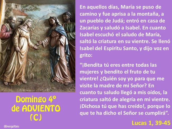 Vídeos Acompañar a vivir – 4 Adv C Vida – 4 Adv C Paso a paso – 4 Adv C Comentarios de J. Antonio Pagola (pdf) Mujeres Creyentes (Lucas 1, 39-45) Rasgos de María (Lucas 1, 39-45) Madres Creyentes (Lucas 1, 39-45) Power-Point Rasgos de María (Lucas 1, 39-45)